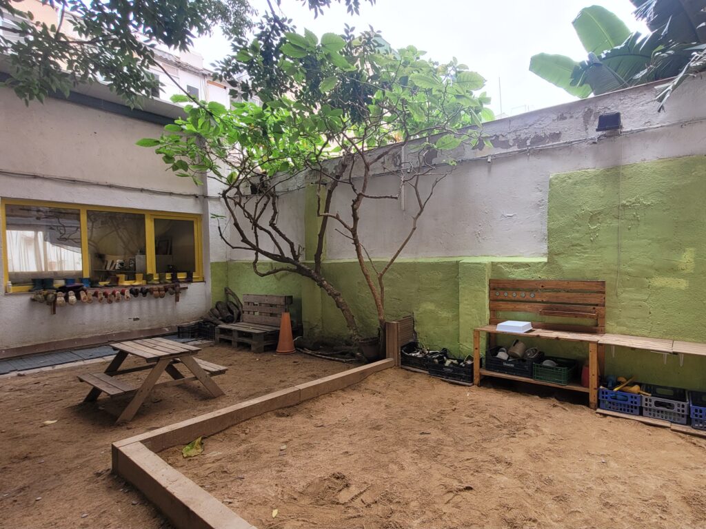 A La Caseta tenim dos espais exteriors: el Pati Gran i Pati del Mig. Tots dos estan sempre oberts i a disposició dels infants com a forma d’autorregular les seves necessitats d’expansió i de moviment, d’estar en contacte amb la sorra i l’aire fresc, de poder colpejar i cridar per alliberar pulsions, d’excavar i aprofundir en la terra, d’escalar arbres i conquerir alçades, de crear escenaris de joc efímers amb sorra i pedres…